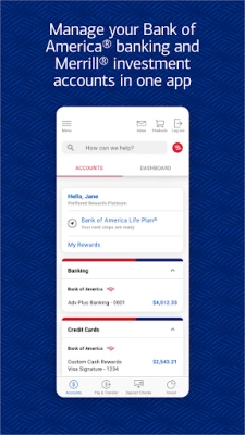 Bank conveniently and securely with the Bank of America® Mobile Banking app for U.S.-based checking, savings, credit card, loan and investment accounts.