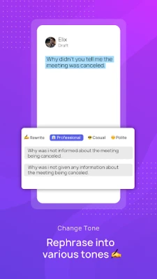 Rephrase sentences with our advanced paraphraser tool. Change tone and rewrite to professional , casual, funny, formal. The best paraphrase tool for social media, emails, and messages.