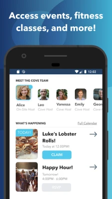 The cove app is a passport to your building. It unlocks everything special about where you work or live. The app allows you to see upcoming events, sign up for fitness classes, book your building’s amenities like gyms and meeting rooms, and much more.