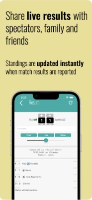The key to a successful tournament is in the detail. With instantLIGA you can continue to adjust details right up until the first match is played. Here's a selection of some of the features you get with the app: