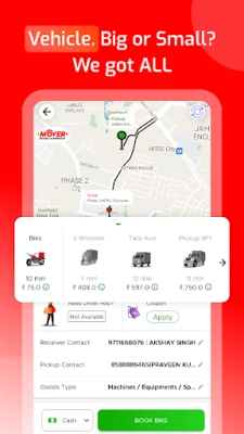 ● HELPER: Compared to most courier delivery apps in India, our courier services near me app also helps book labour. When you book Helper, your MOVER (Driver) will be your helper and help in the loading/unloading.