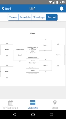 - Event search - Tournament schedule maker - Bracket generator - View divisions and teams - View pool standings - View scores - View results - View venues and get directions - Receive game and schedule notifications - Update scores - And more!