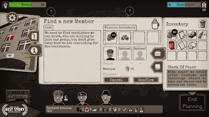 Through the Darkest of Times is a historical resistance strategy game, focusing on conveying the somber mood of the period and the very real struggles of average people living in the 3rd Reich. Historical accuracy means that your small group of resistance fighters will not change the outcome of the war, nor will you prevent all of the Nazi’s atrocities, but you can certainly do everything in your power to save as many lives as you can and oppose the fascist system wherever possible.